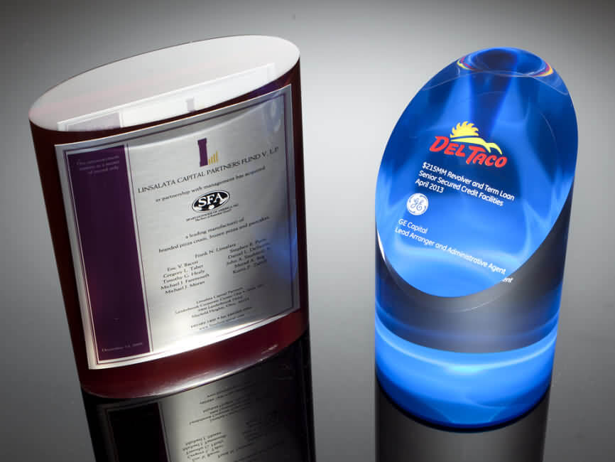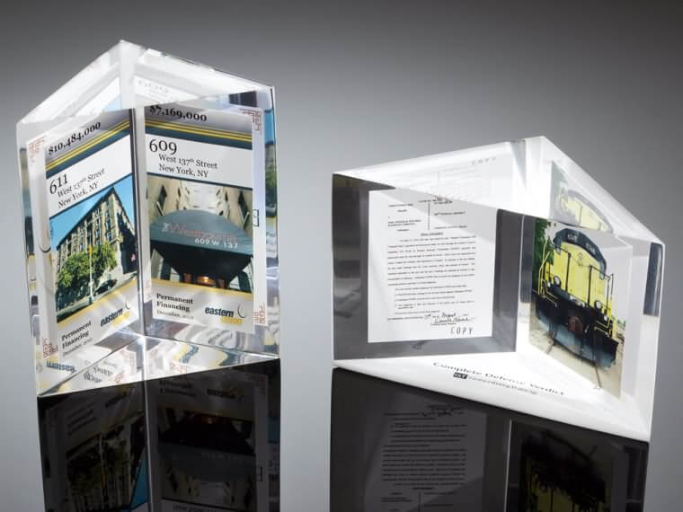 - Law Firms – Capture successful client deals with lucite financial tombstones.