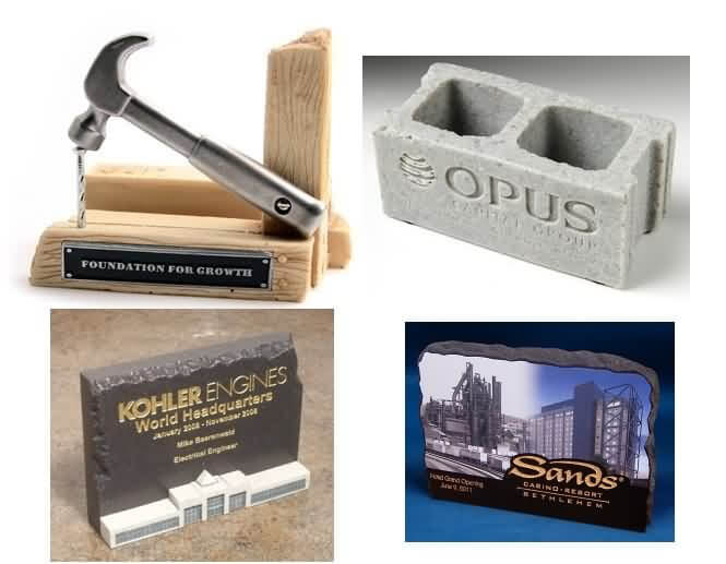 View many more creative construction themed awards and contractor themed gift examples, as well as our idea gallery at LuciteTombstones.com