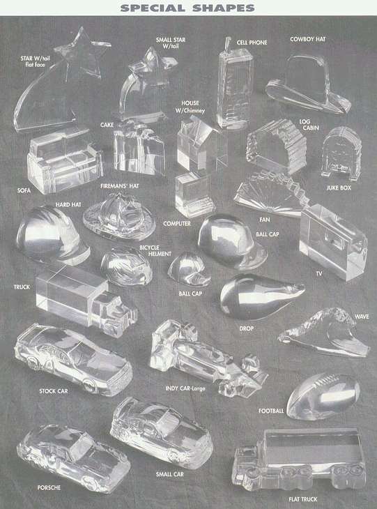 These special shapes are available in many sizes. Once you have chosen the desired shape for your custom award, you must decide the approximate size needed and the artwork you want for the insert.