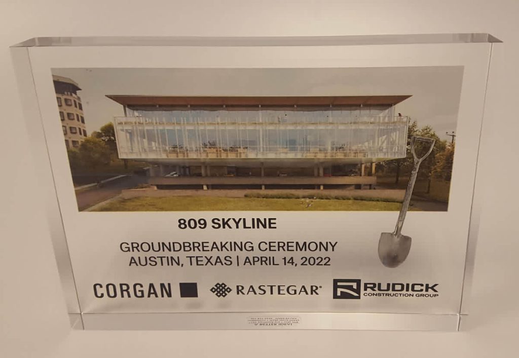 Our Lucite & Acrylic Groundbreaking Awards & Paperweights preserve these milestones in a beautiful display format that recipients proudly showcase in offices and boardrooms.